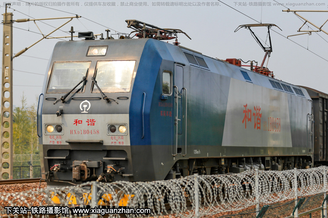 机车名称:和谐1B型电力机车 HXD1B车    号:0458生产厂商:株洲运行时速:120km/h 轨    距:准