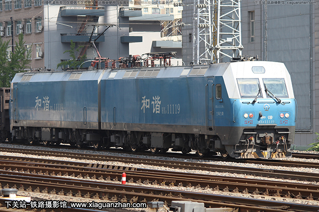 机车名称:和谐1型电力机车 HXD1车    号:1119生产厂商:株洲运行时速:120km/h轨    距:准