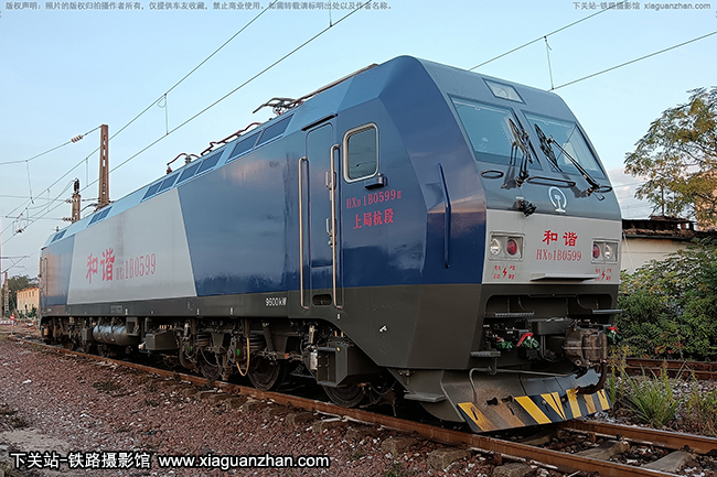 机车名称:和谐1B型电力机车 HXD1B车    号:0599生产厂商:株洲运行时速:120km/h轨    距:准