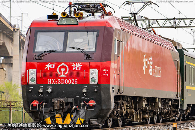 机车名称:和谐3D型电力机车 HXD3D车    号:0026生产厂商:大连运行时速:160km/h轨    距:准