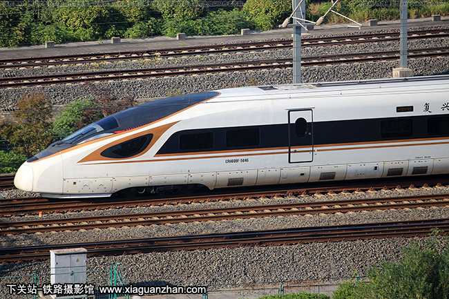 动车名称:复兴号CR400BF型动车组车 号:5046生产厂商:长春运行时速:350km/h